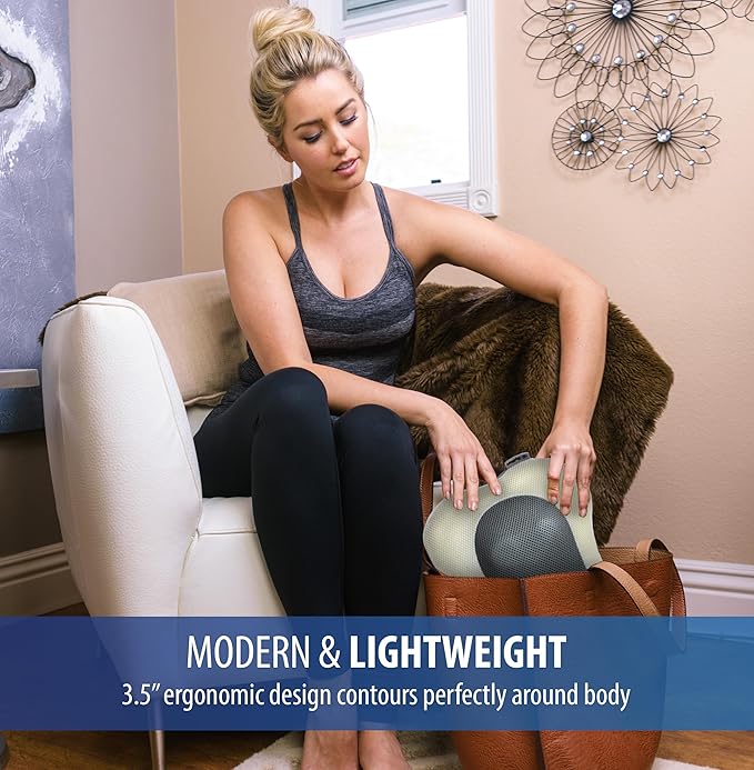 - Ergonomic & Versatile: Fits your body's contours: arms, hands, legs and even feet, to help relieve plantar fasciitis while the Velcro straps secure the massager to an office chair or car headrests (car adapter included)