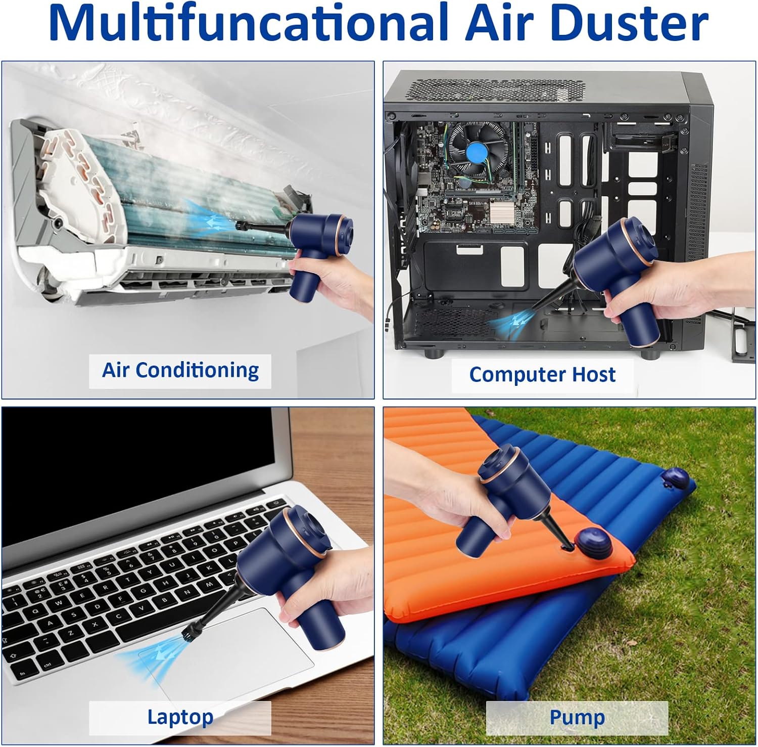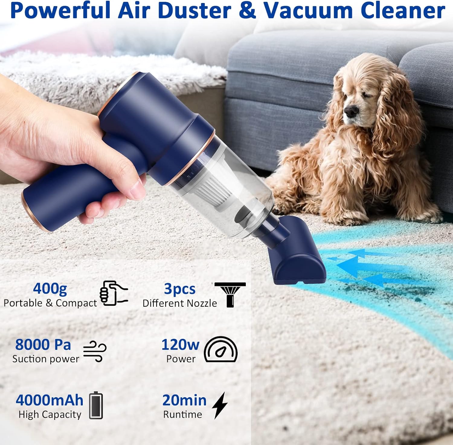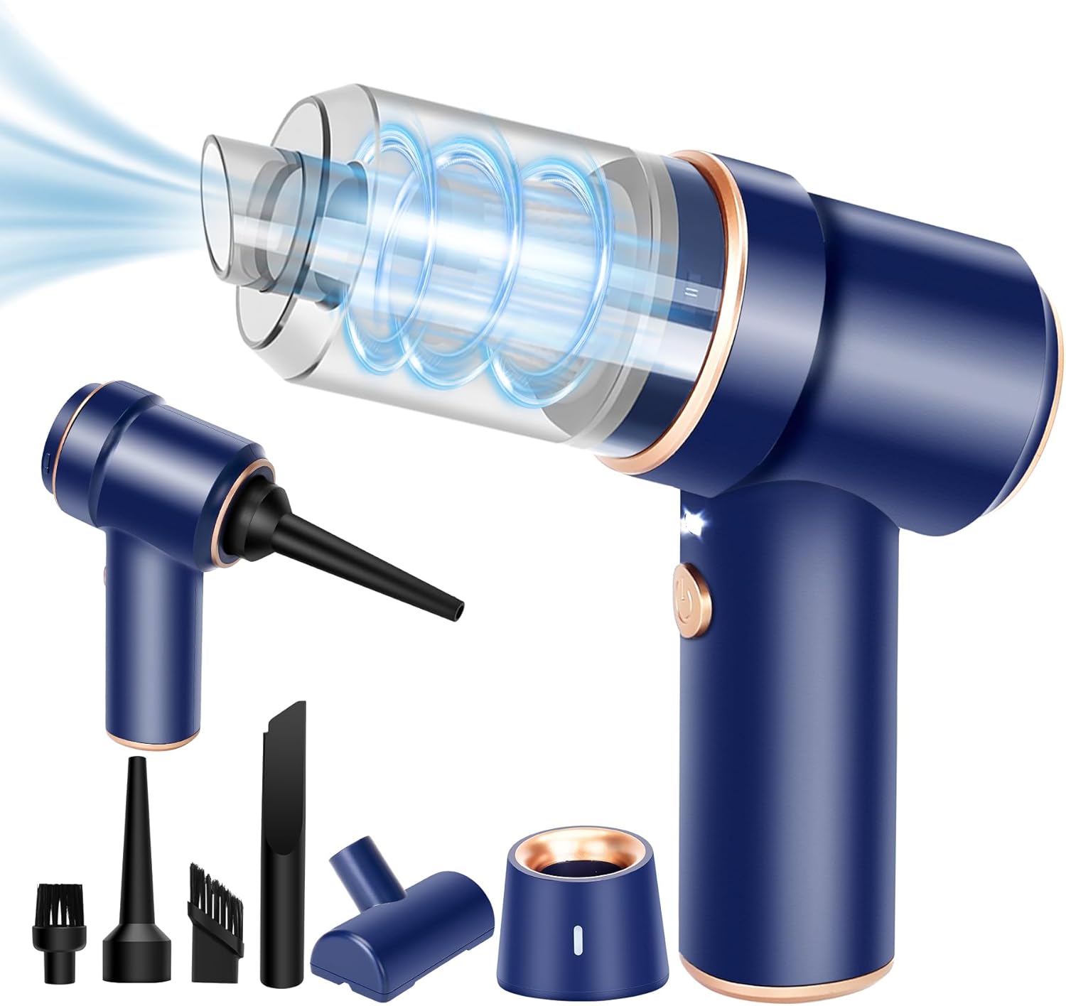 - 【Sucking & Blowing Function】The desk vacuum with air dusting function, one end of the accessory connection is for vacuuming effect. The other end is for the blowing function, as an air duster, the extended blowing nozzle concentrates suction to deeply clean.