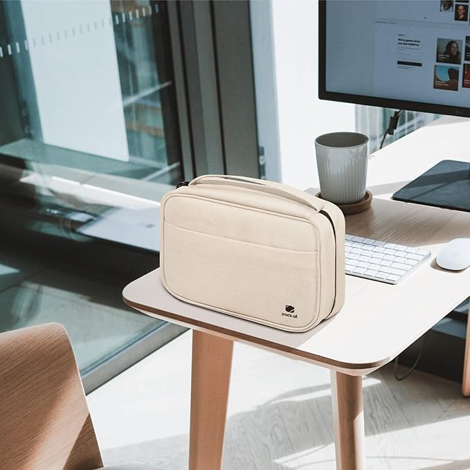 pack all Electronic Organizer Plus, Larger Capcity Cable Organizer Bag, Shockproof Carrying Case, Portable Cord Travel Organizer Storage Bag for Cables, Chargers, Phones, USB, SD Cards(Beige)