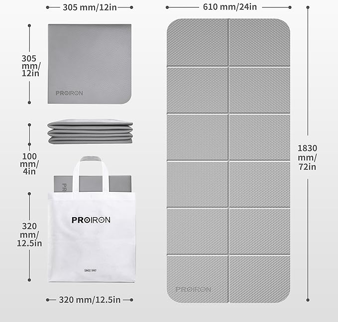 - 【Size】The size of this TPE travel mat is: (72"L x 24"W x 0.24"Th), Folded size is: (12"L x 12"W x 4"Th). We offer you a 180-day customer satisfaction guarantee! At PROIRON, your satisfaction is not an option but a guarantee!