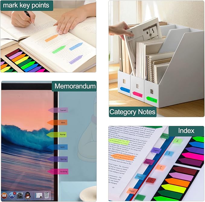 - [WIDE APPLICATION] Fluorescent translucent book sticky tabs can be used to classify and mark documents, computer message boards, reading notes, books, folders, diaries, catalogs, archives, files, and