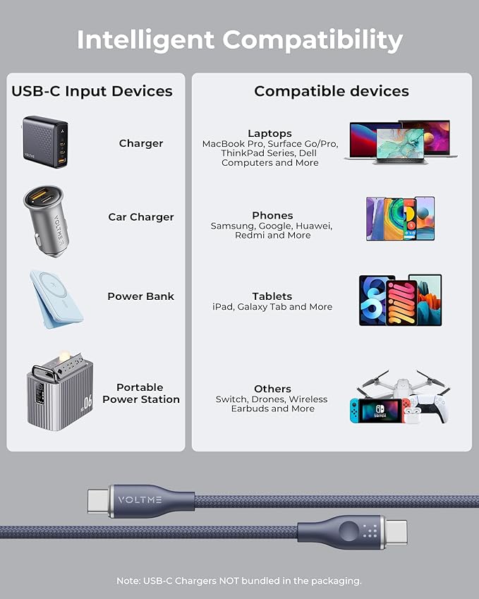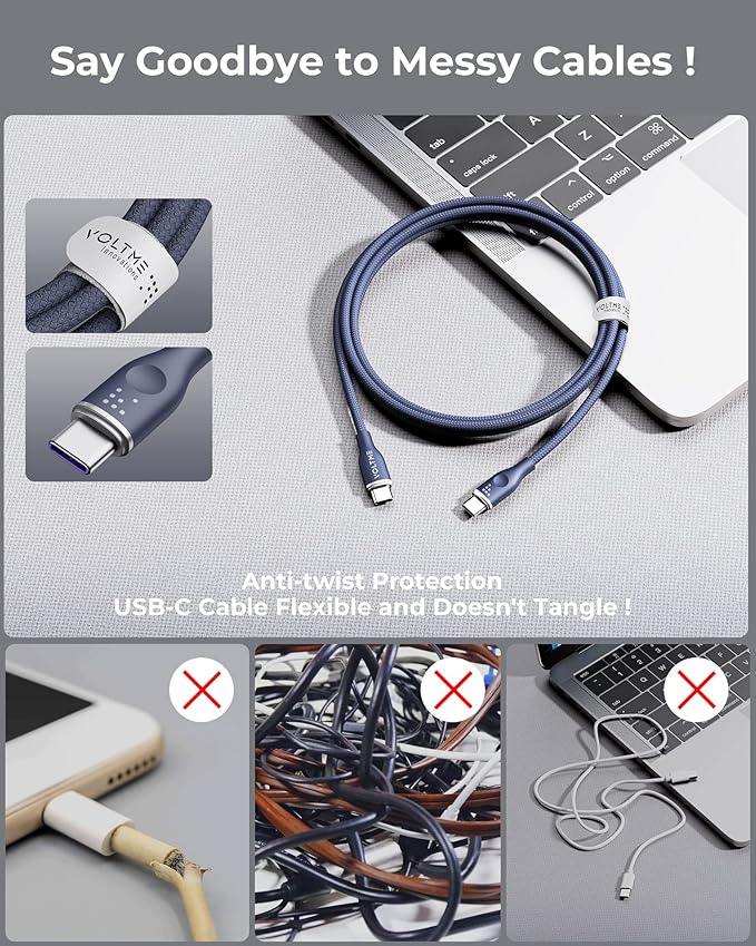 - Rapid Charging and Data Sync: VOLTME 100W USB C Cable offers lightning-fast charging and data synchronization. With a remarkable 5A fast charge and a transfer speed of 480Mbps, you can power up your devices and transfer data in a flash. Experience 50% faster charging compared to ordinary cables.