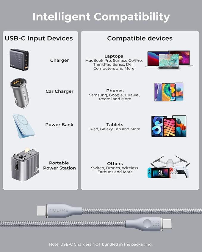 - Rapid Charging and Data Sync: VOLTME 100W USB C Cable offers lightning-fast charging and data synchronization. With a remarkable 5A fast charge and a transfer speed of 480Mbps, you can power up your devices and transfer data in a flash. Experience 50% faster charging compared to ordinary cables.