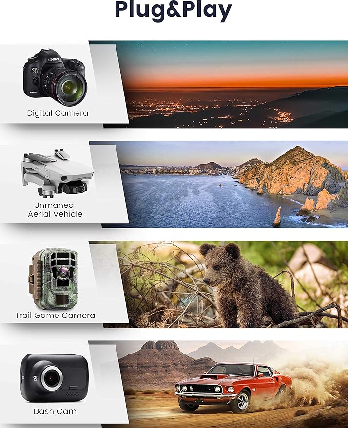 - Compatible Devices : Android, Laptop, Trail Camera, DSLR Camera, USB-C iPhone 15, iPad