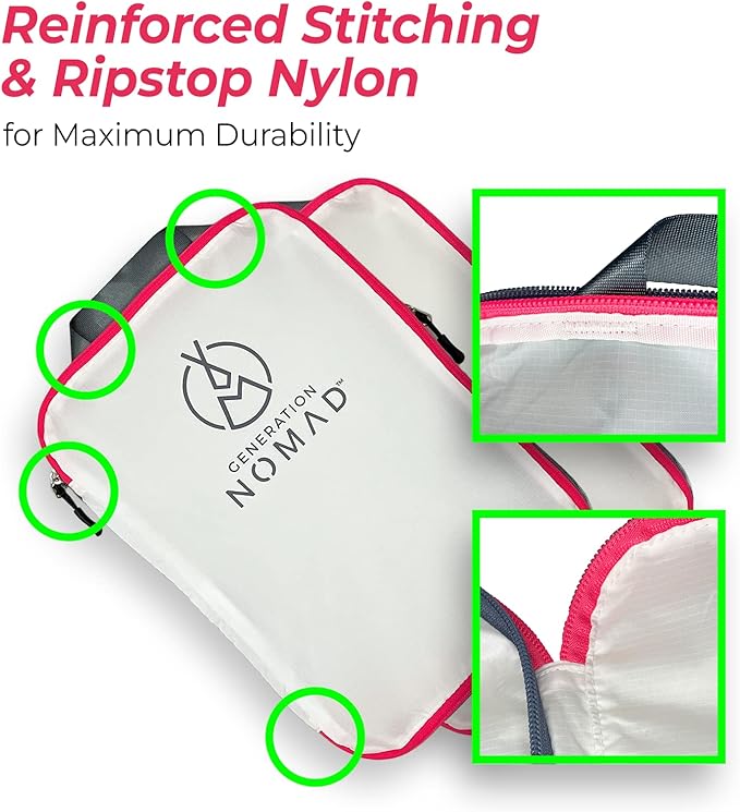 - REINFORCED & DOUBLE STITCHING strategically placed along seams and handles ensuring your packing cubes stand up to frequent use without tearing.