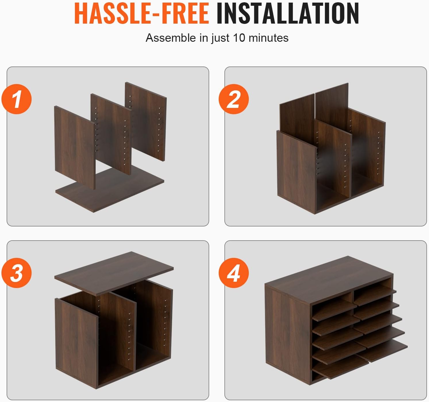 VEVOR Literature Organizers, 12 Compartments Office Mailbox with Adjustable Shelves, Wood Literature Sorter 20.4x12x16.1 inches for Office, Home, Classroom, Mailrooms Organization, EPA Certified Brown