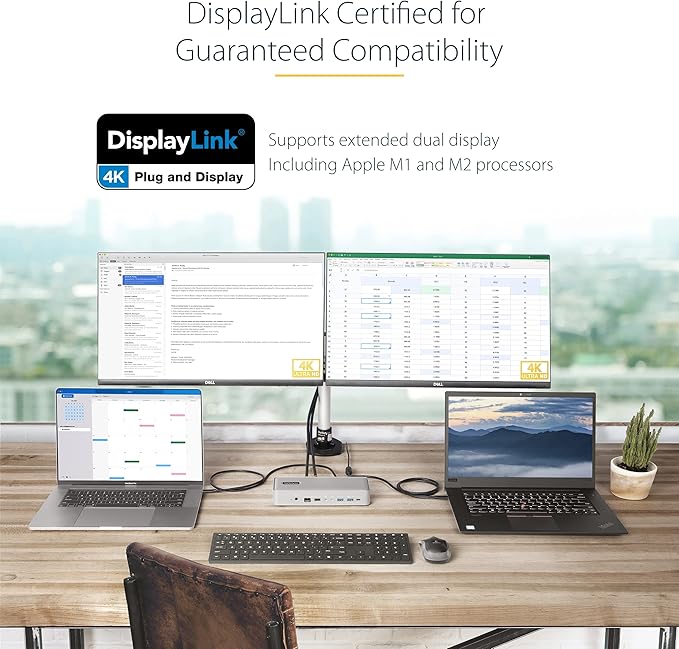 - COMPATIBILITY: Dual-Host KVM Dock supports mixed OS, Windows, macOS, ChromeOS, Linux; Works w/ Intel, AMD and the Apple M-Series, enabling two external displays even on laptops that natively only support one; Driver installation required on Windows/macOS