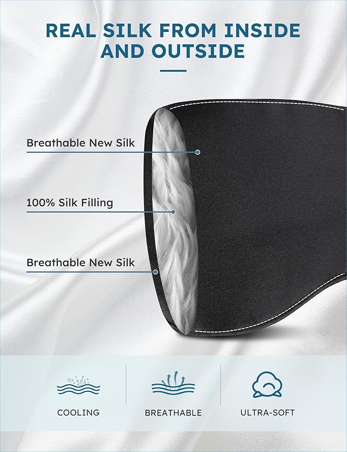 - Unique 3D Contour Design - Designed based on ergonomics, Bluetooth sleep headphones have wider and deeper eye space than traditional eye masks, which will not cause your eyeballs and face are under pressure and will not rub the eyelids. Moreover, premium soft memory foam and smooth ice silk lining can relieve facial pressure and help you fall asleep quickly.