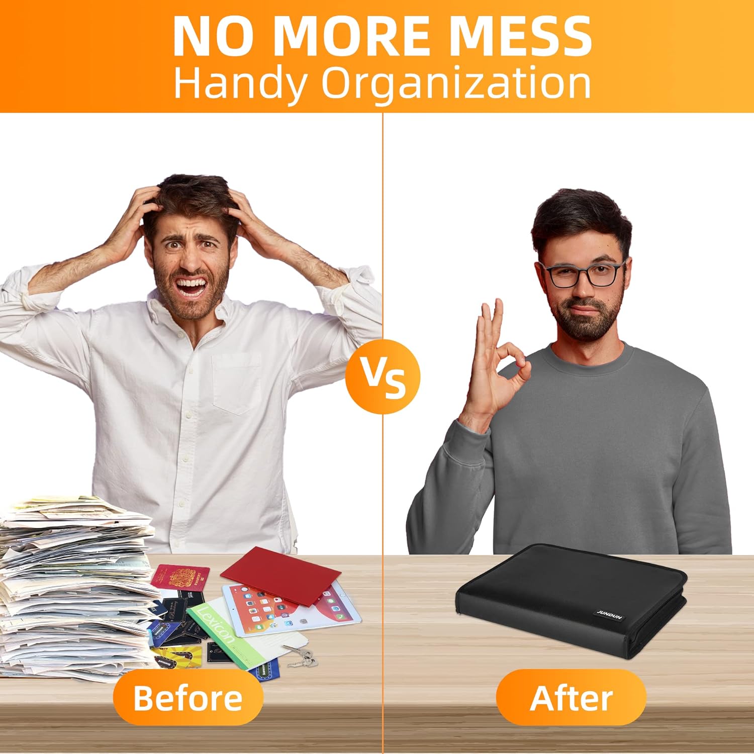 - UPGRADED DESIGN: Say goodbye to cluttered files and disorganization with JUNDUN's file organizer folders.Our unique design allows you to neatly store and classify letter/A4 files, receipts, cards, USB drives, pen, passports,and more.With our according file organizer,you only need one organizer to handle all your files,saving you time and money.Simplify your life and stay organized with our cost-effective solution