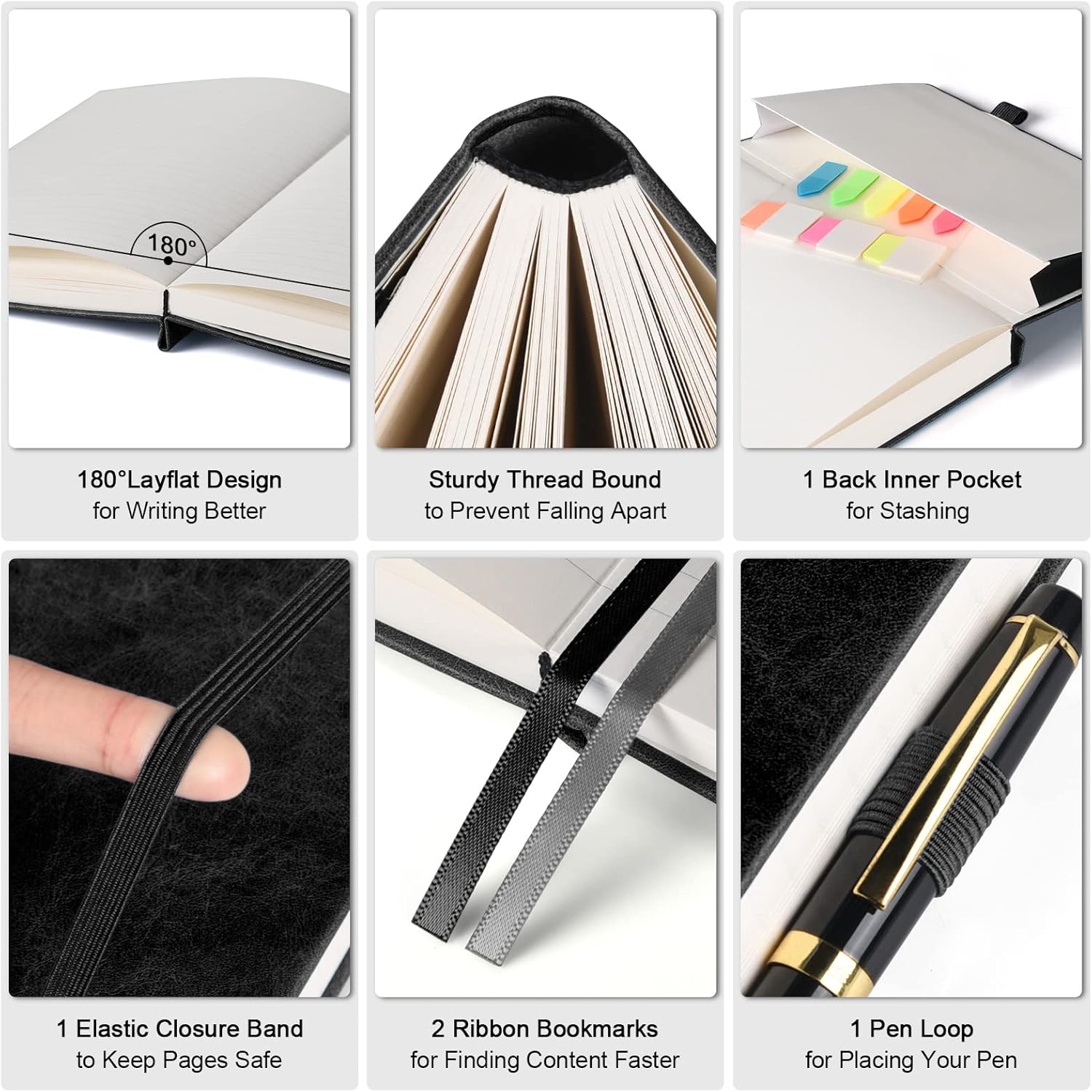 - 【Tough & Stylish Hardcover】Crafted from TOP-NOTCH VEGAN LEATHER with distinctive texture, which is animal-friendly and boasts a luxurious look. DURABLE hard cover provides superior protection to your pages compared to softcover, while offering a stable writing surface. Featuring an innovative thread-bound binding that allows for easy LAY-FLAT use, catering to both right- and left-handed users.