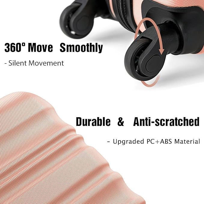 - 360° Spinner Wheels, Conquer Any Terrain: 4 silent wheels, which passed strict violent-drop test and 15kg load for 20km rolling speed test, glides effortlessly on cobblestones, carpets, and slopes without wobbling or jamming. Even in crowded airports or busy streets, the luggage can be flexibly passed
