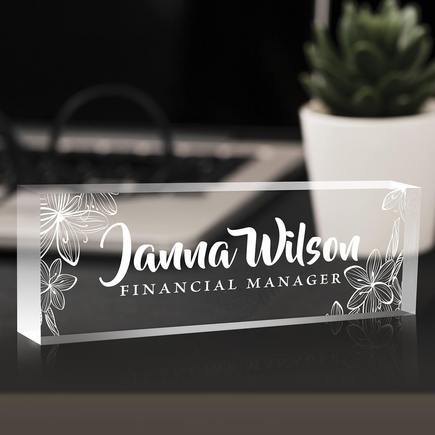- 🎁Premium Quality: The personalized name sign plates are made of high quality crystal clear acrylic blocks. This office nameplate will stand out on any desk! We use high-tech uv printers to print on quality clear acrylics glass so you can visualise your memories.