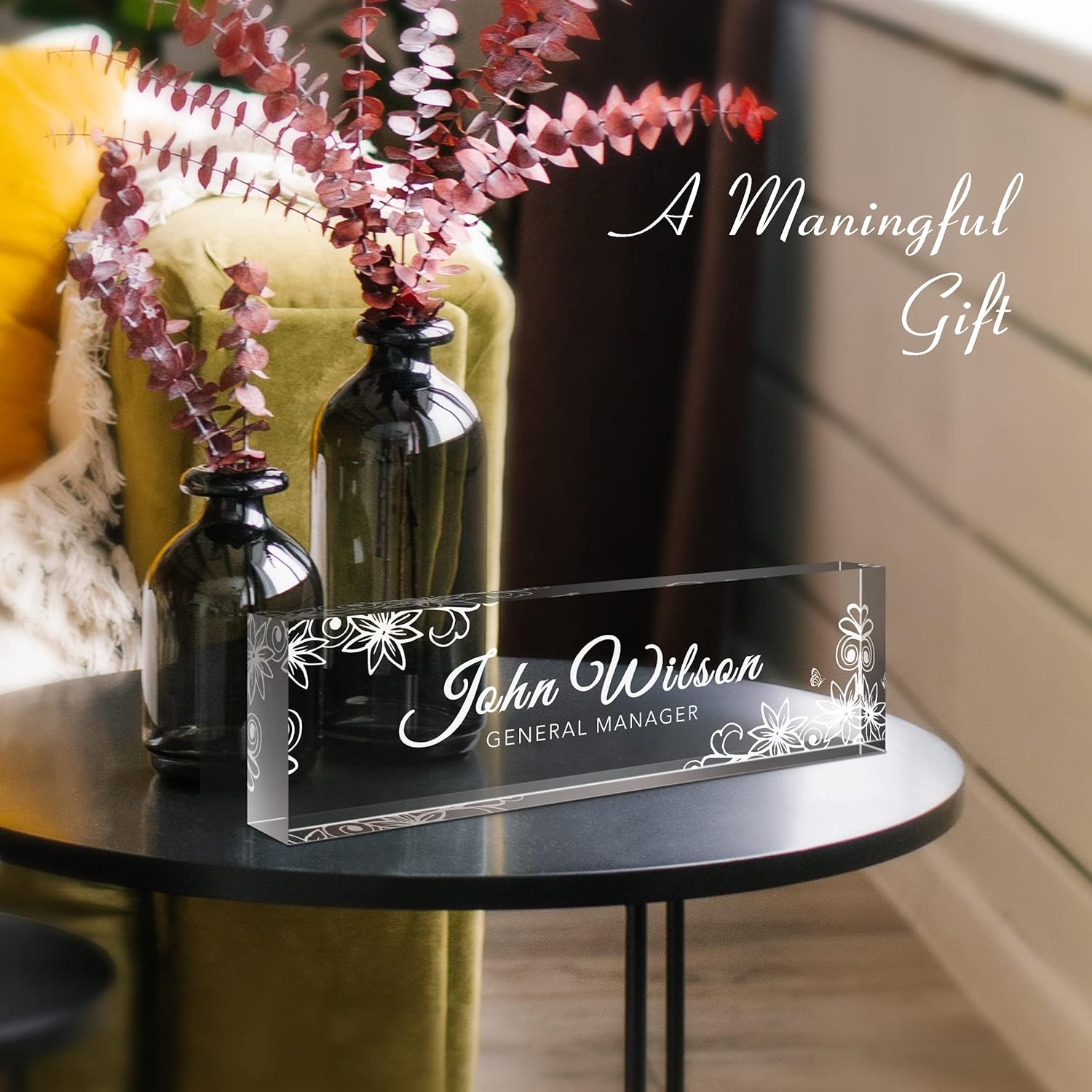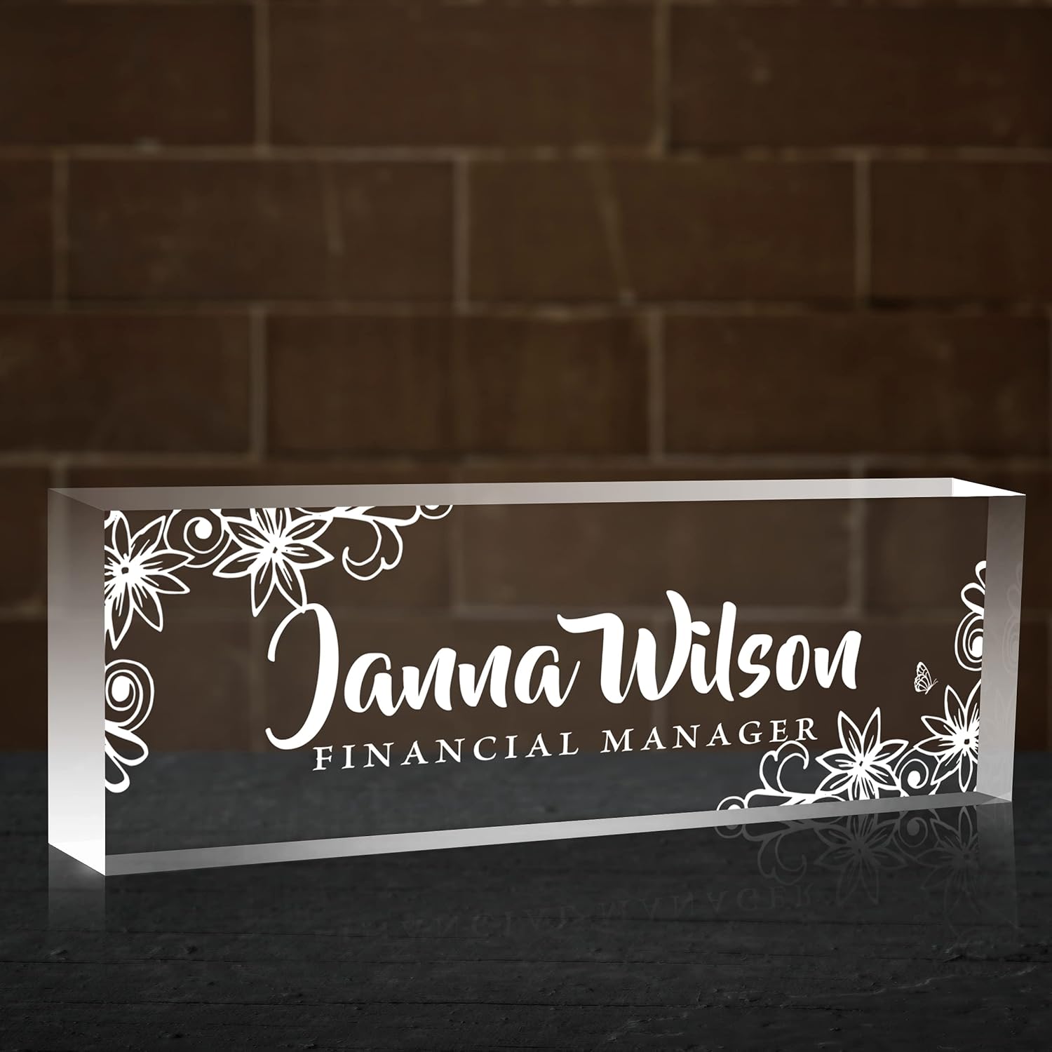 - 🎁Premium Quality: The personalized name sign plates are made of high quality crystal clear acrylic blocks. This office nameplate will stand out on any desk! We use high-tech uv printers to print on quality clear acrylics glass so you can visualise your memories.
