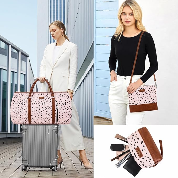 - 4pcs Garment Bag: Experience the ultimate travel solution with our 4-piece convertible set. This all-in-one system includes a large carry-on duffel (21"L x 11.5"W x 13"H) for formal wear, a versatile messenger bag (10"L x 9"H) for daily essentials, a compact toiletry bag (7"L x 4.5"H), and a spacious drawstring laundry bag. Perfect for business trips, weekends, weddings, and extended vacations, it organizes everything you need in one sleek package.