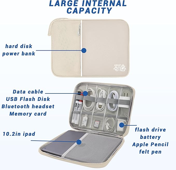 Electronics Organizer,Travel Cord Organizer Pouch, Portable Cable Organizer Bags, Waterproof Electronic Accessories Storage Case for Cables, Cords, Charger, Phone (Single Layer-Large-Beige)