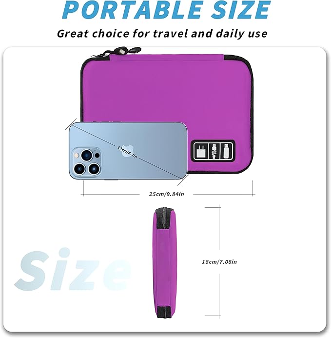 - Size:Size9.84"X7.08"X0.98"(LxWxH).Compact and lightweight electronic organizer make it easily to carry and can fit in any backpacks or suitcases. A simple well organizer without taking up too much space.