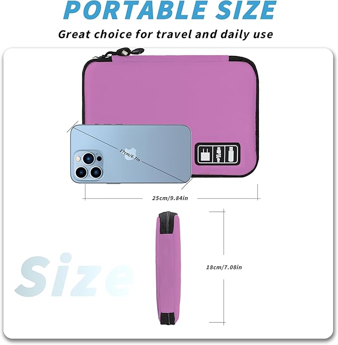- Size:Size9.84"X7.08"X0.98"(LxWxH).Compact and lightweight electronic organizer make it easily to carry and can fit in any backpacks or suitcases. A simple well organizer without taking up too much space.
