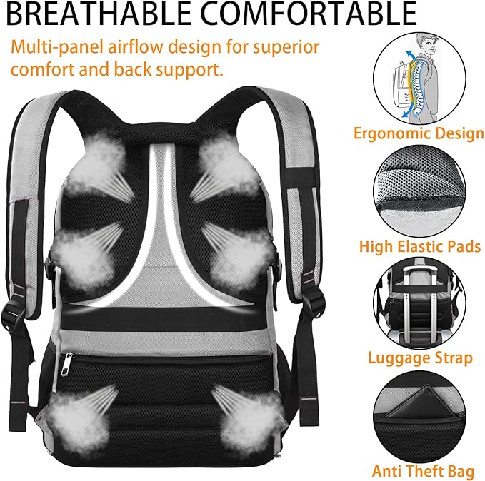 - Adult Backpack TSA FRIENDLY & MULTIPURPOSE: TSA-Friendly feature exclusive designed for AIRPLANE TRAVEL, makes it getting through airport security quickly and easily by lying the laptop flat without removing it from the bag. The large capacity USB charging stylish computer bag backpack is great companion for OUTDOOR/INDOOR activities and for daily use at anywhere for camping, hiking, vacation, travel, trekking, mountaineering, weekend getaway, occasional travel, overnight trip