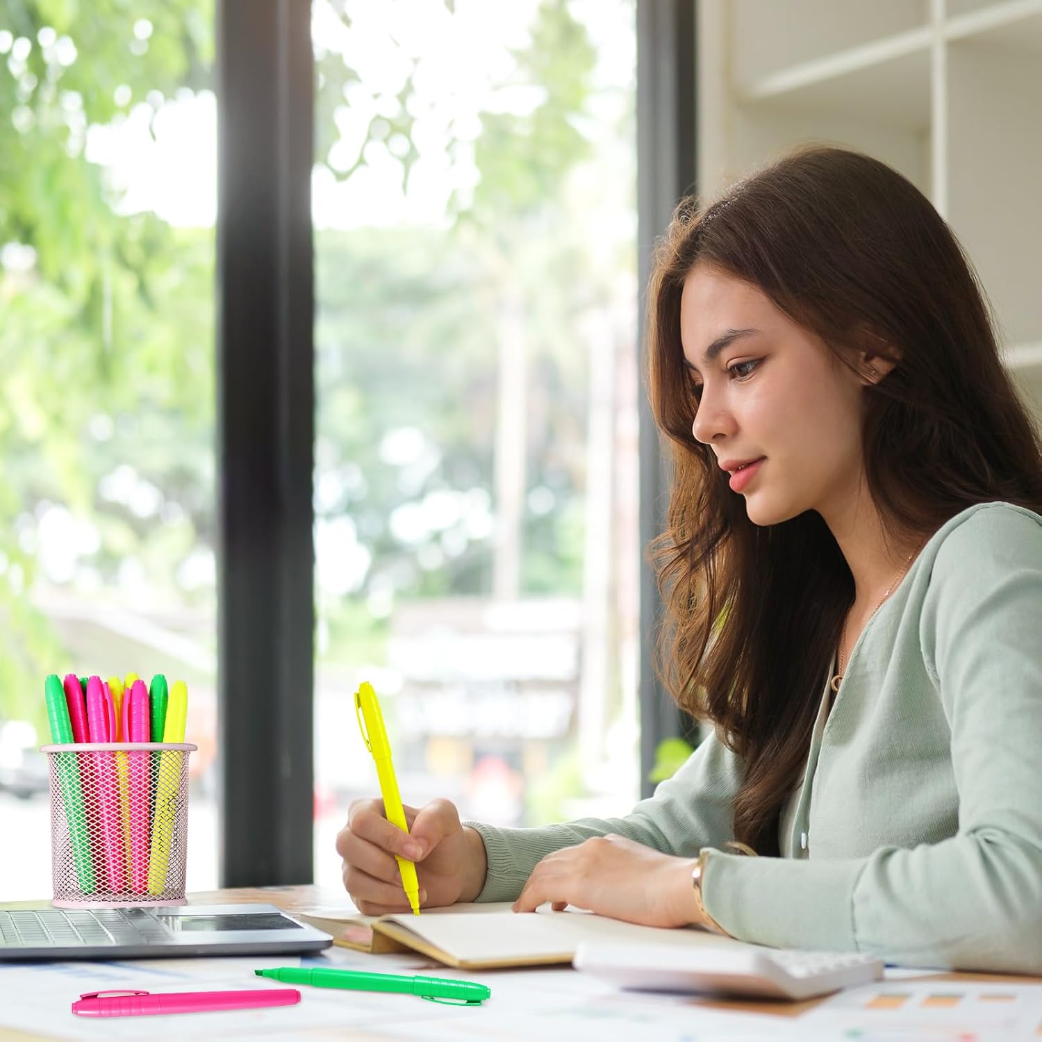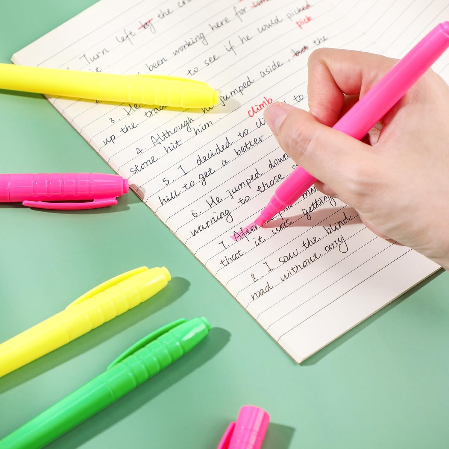 - Chisel Tip Highlighter Pens: aesthetic cute highlighters create thick and thin lines, nice for highlighting and underlining; Highlighters pens are ideal for stocking up as office supplies or school supplies for teachers and office staff, achieving convenient distribution and storage