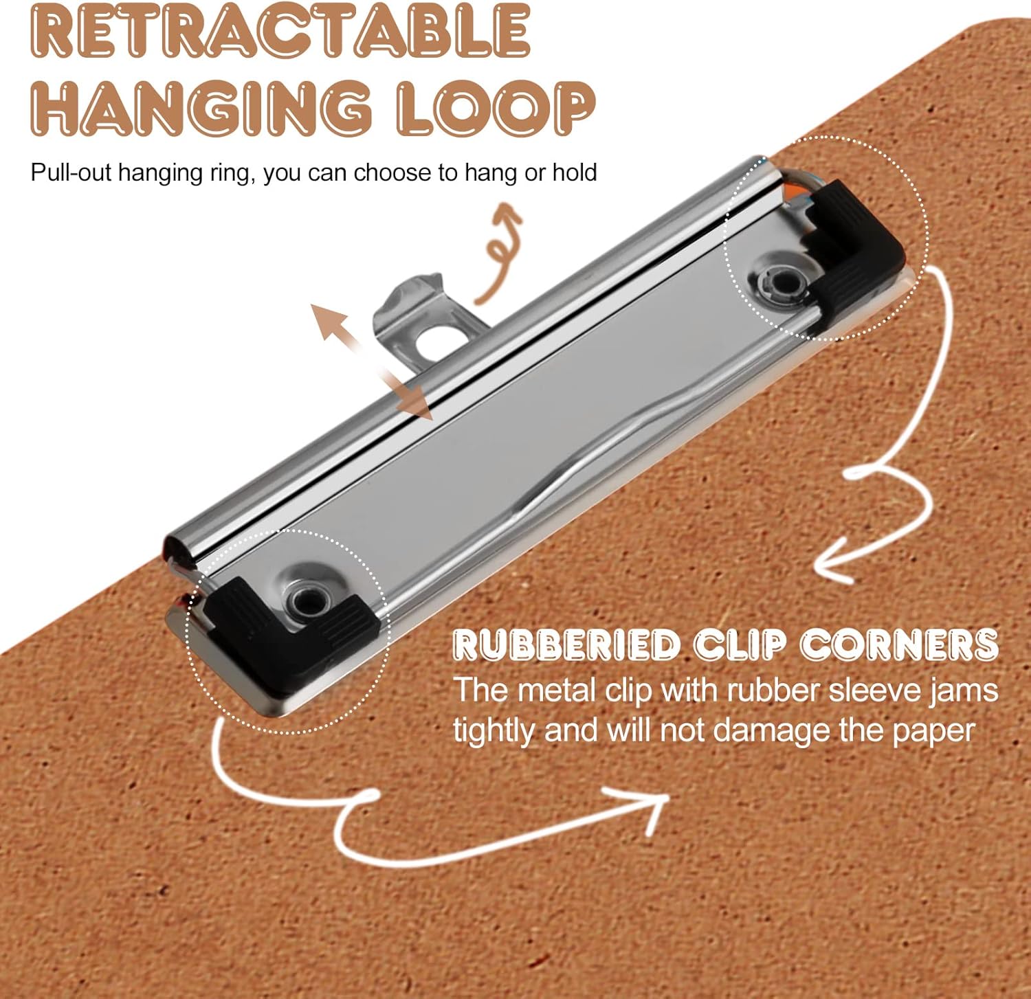 - RETRACTABLE HANGING LOOP: The clipboards have a built-in hanging hole, which can help you place your documents randomly. And it can be stowed away when not needed