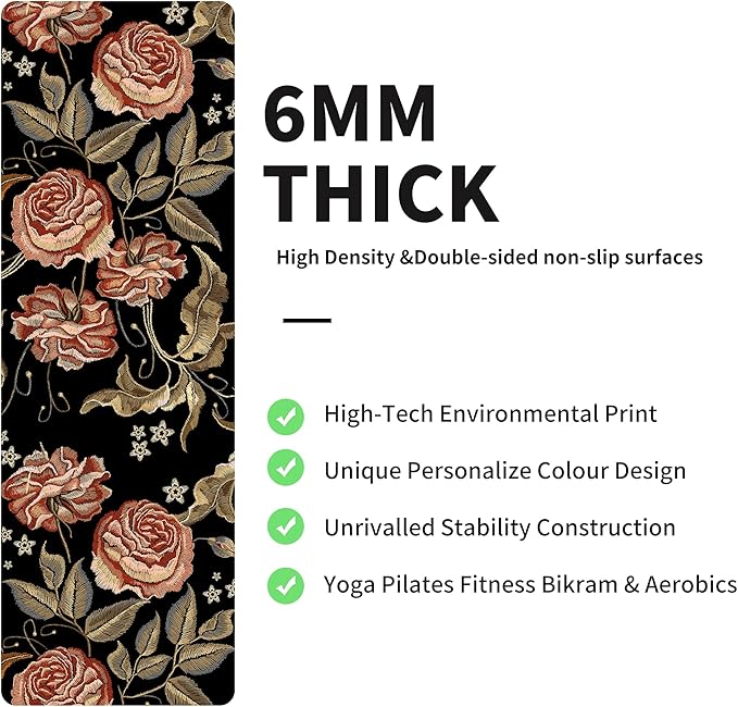 nuveti Yoga Mat Print Extra Thick TPE Non Slip Fitness Exercise Mat with Carrying Bag,72"x24" Extra Thick 6MM Exercise & Workout Mat for Yoga, Pilates Fitness and Floor Exercises