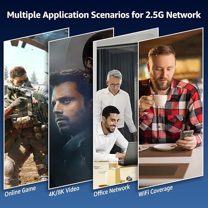 - 【Widely Used】Supports wall mount and desktop placement. Widely used in various networks environment needs, such as 2.5G NAS, 4K video, gaming PC, 2.5G Server, 2.5G WiFi 6 AP, 2.5G PCIe Adapter and more.