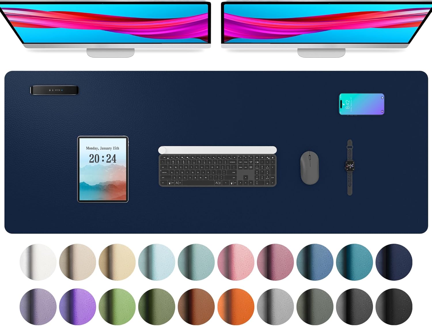Aothia Leather Desk Pad Protector, Mouse Pad, Office Desk Mat, Non-Slip PU Leather Desk Blotter, Laptop Desk Pad, Waterproof Desk Writing Pad for Office and Home (48"x17", Dark Blue)