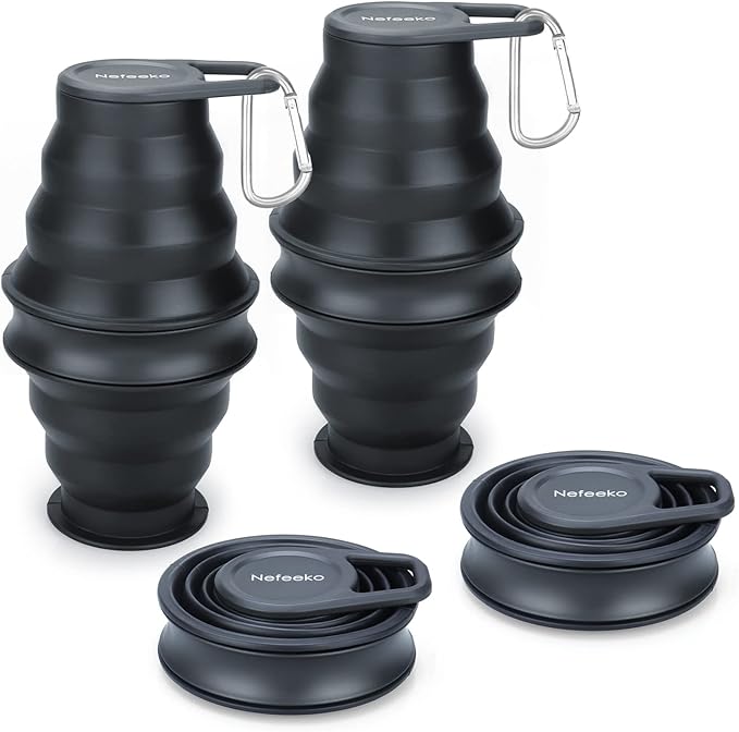 Nefeeko Collapsible Water Bottle,17oz(500ml) Reuseable BPA Free Silicone Foldable Water Bottles for Travel Gym Camping Hiking, Portable Leak Proof Sports Water Bottle with Carabiner