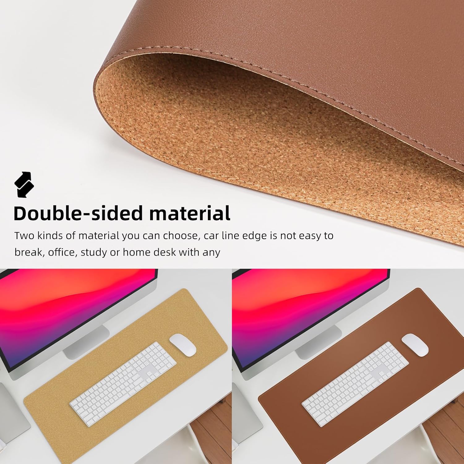 Leather Desk pad Protector, Large Desk mat with Natural Cork & PU Leather,Mouse pad,Non-Slip Office Desk Mat,Waterproof Desk Writing Pad for Office and Home (35in*17in, Brown)