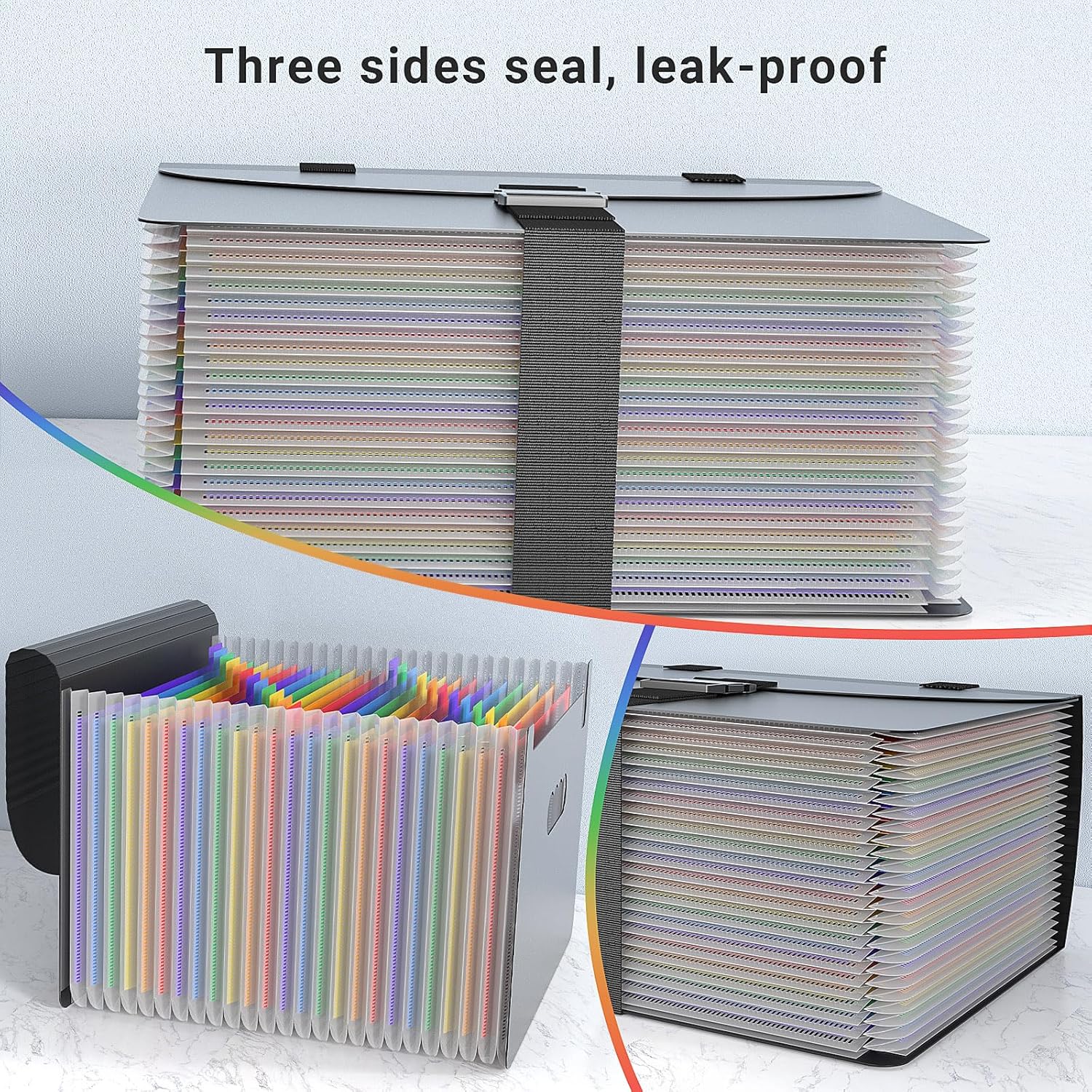 - ✔【TOP-GRADE MATERIALS】Expandable file folder are made by high quality polypropylene and polyester, 20% and more thicker than other file folders, it can stand on the desktop independently, no easy to be broken and deformed. 100% Waterproof, Non toxic, Non Odor, Anti-wear, tear and Moisture resistant.