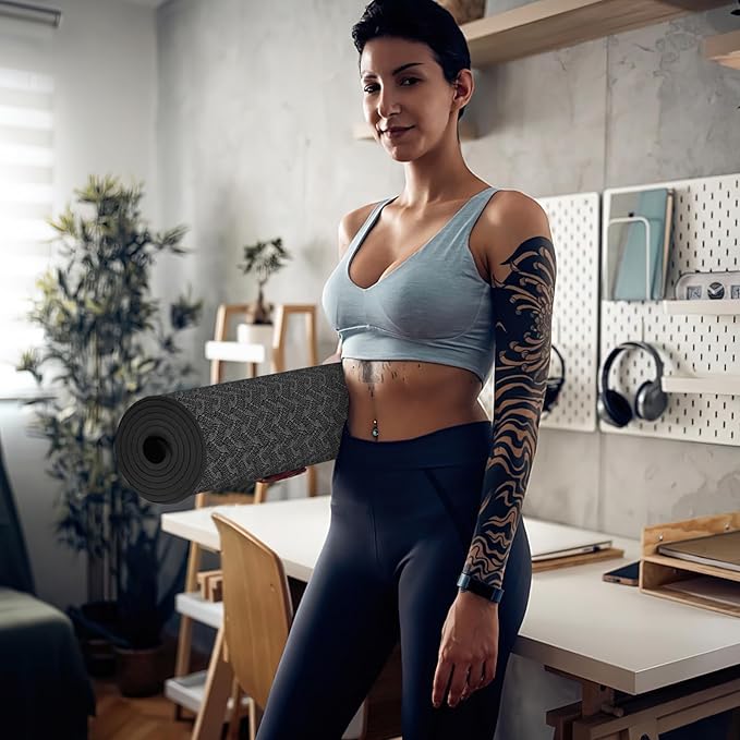 - 【Environmentally TPE high quality material】The yoga mat is made of high-quality TPE material, a flexible material that can be stretched repeatedly, and has excellent durability. Environmentally-friendly, odorless, healthy and recyclable materials. TPE pads do not have the strong residual odor as other pads.