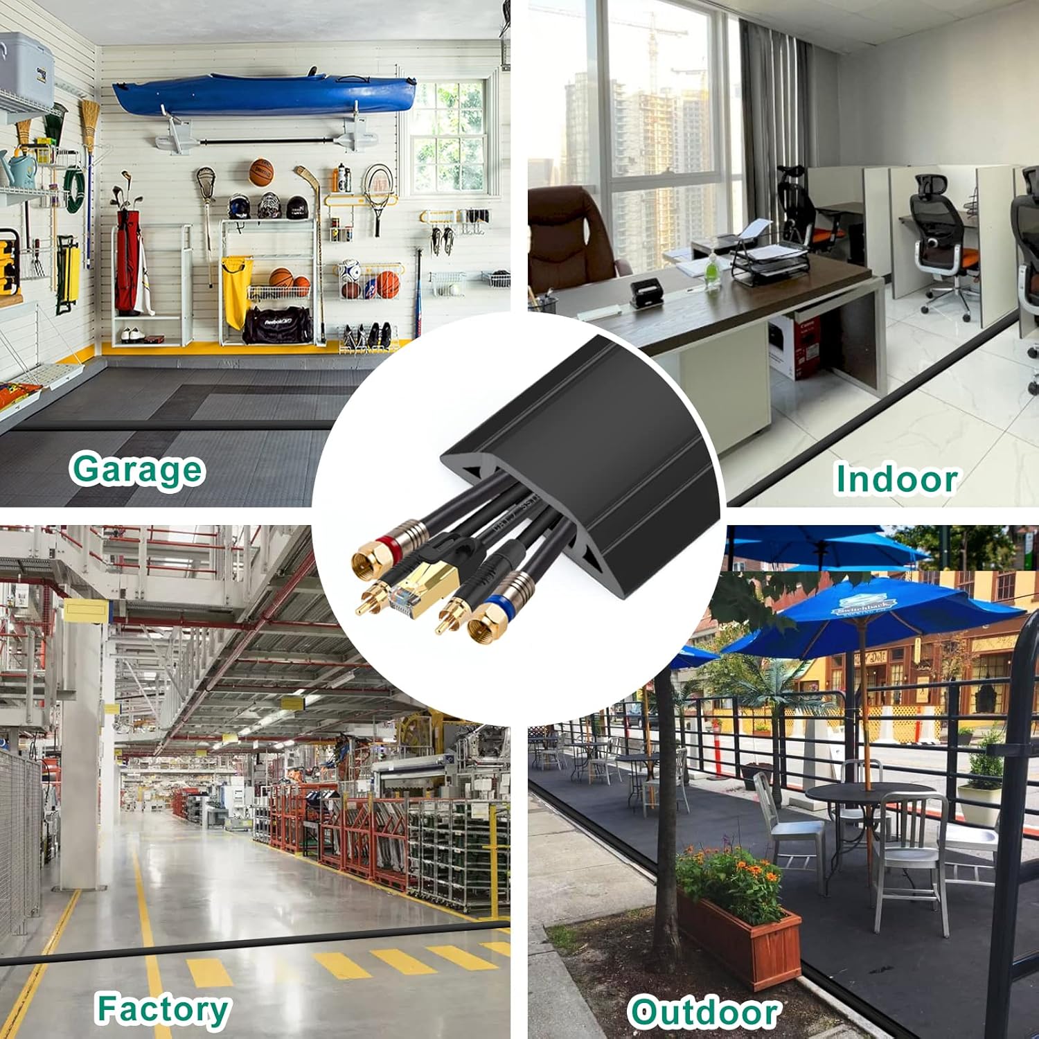 - FOR OUTDOOR OR INDOOR -- Heavy Duty cord covers are suitable for high-traffic areas or areas where pets or small children are present. Such as office, home, workshops, warehouses, concerts or outdoor settings.
