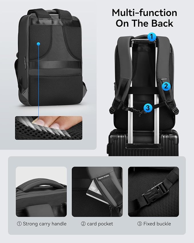 - ▶ [Practicality]This backpack fits in well at meetings where suits are the standard. It has plenty of space to store documents, shoes, and a set of gym cloths. It's also a great commuter backpack and really useful if you carry a lot of tech/cords/adapters around with you. The back of the backpack also has a "cross strap" that will fit over your standard carryon luggage for rolling around the airport. Perfect for both professional use and weekend travel.