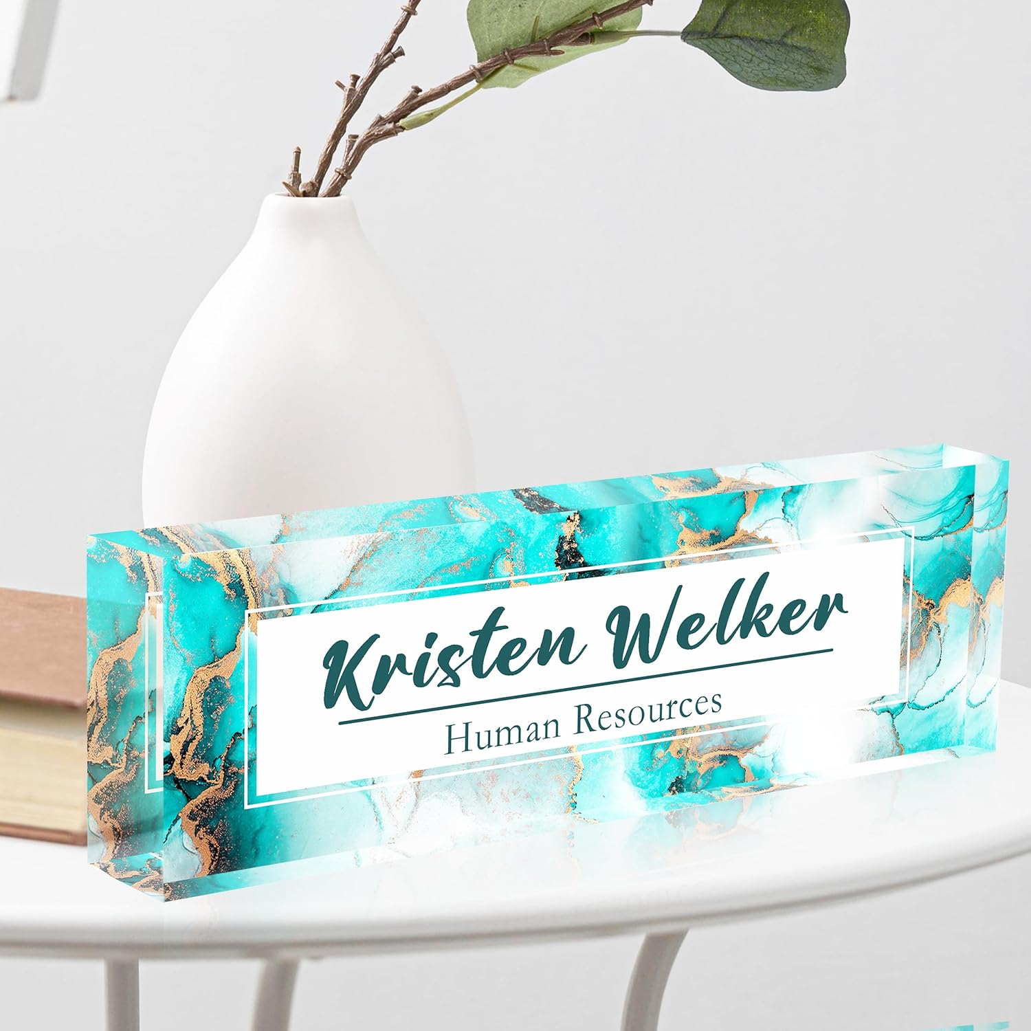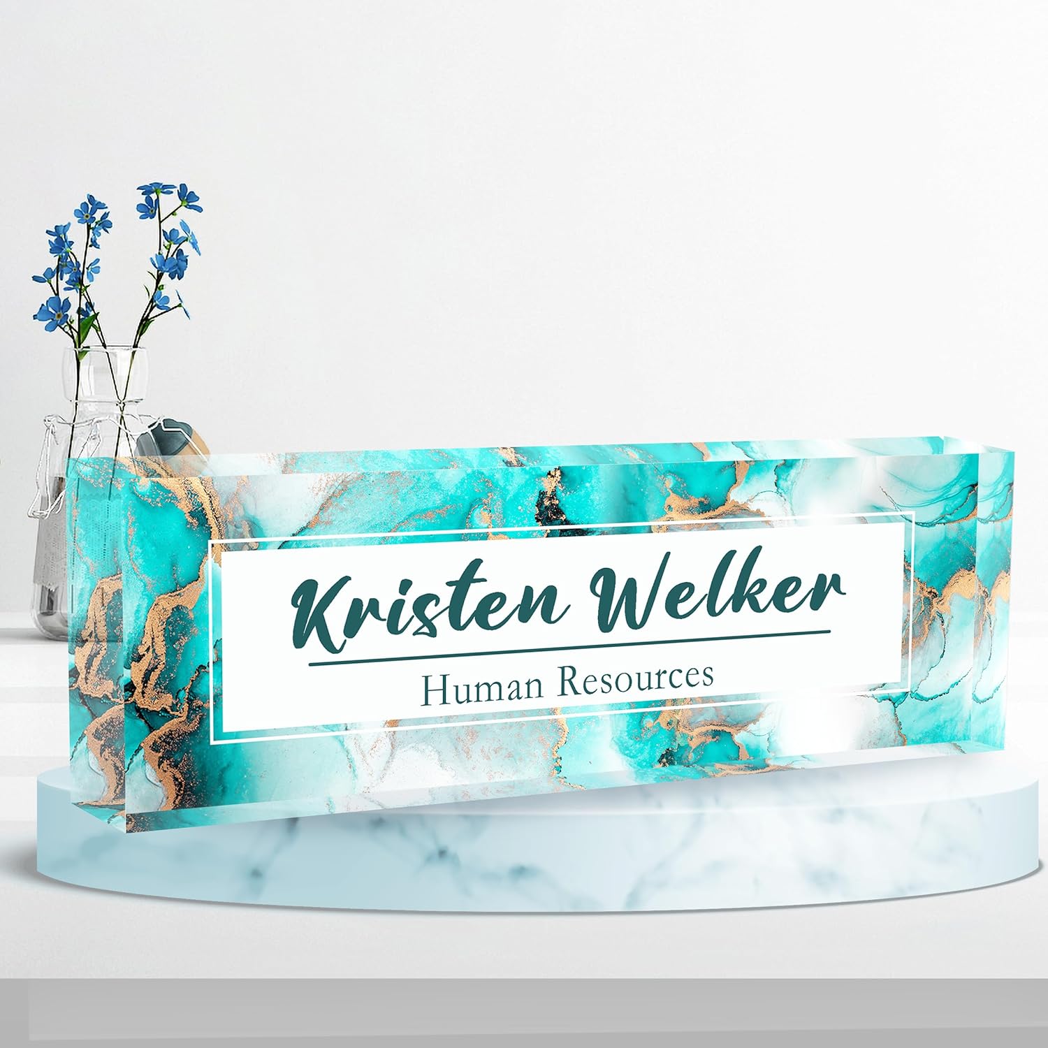Desk Name Plate Personalized, Premium Ocean Blue Gold Marble Acrylic Desk Name Plate, Personalized Name Plate for Desk, Office Decor for Women or Men Coworkers, Boss, Employee, Teacher