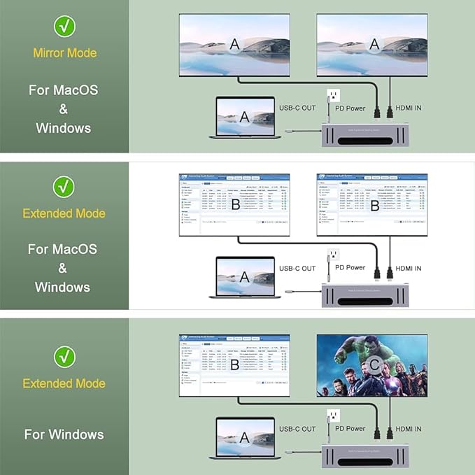 - 【Dual Displays & UHD 4K Output】 - The thunderbolt 3 hub with 4K HDMI supports connecting 2 external dual HDMI-enabled &displays simultaneously. Mirror and extend your MacBook or PC to HDMI TV, projector or monitor up to 4K(3840 x 2160@30Hz). Optimizing your visual experience of playing video games, watching movies and many other activities.Pay attention: The docking station only can extend one display when you use 2020 MacBook mini/Air/Pro which with M1 chip.However,you can mirror two displays.