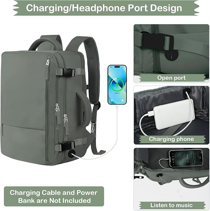 - [Multifunctional Opened Port for Charging & Listening]: The versatile port of the travel backpack side can provide convenient access to charge your phone or you can use it as a headphone port to listen to your premium music. (Tips: Only an opened port, charging cable and power bank are not included)