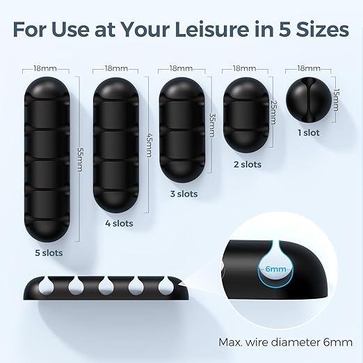 - Fits Various Cables: These cable holders are capable of holding cables up to 6mm in diameter, making them ideal for organizing a range of small to medium-sized cables, including phone chargers, USB cords, headphone cables, and more.