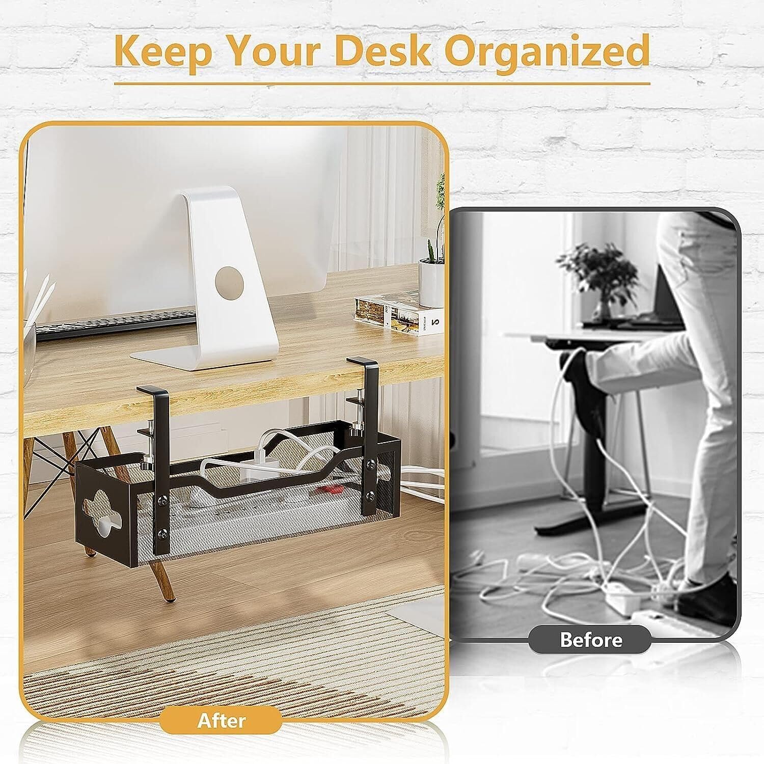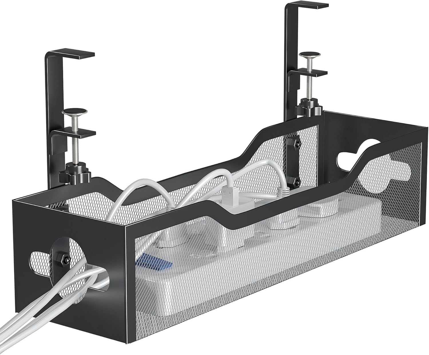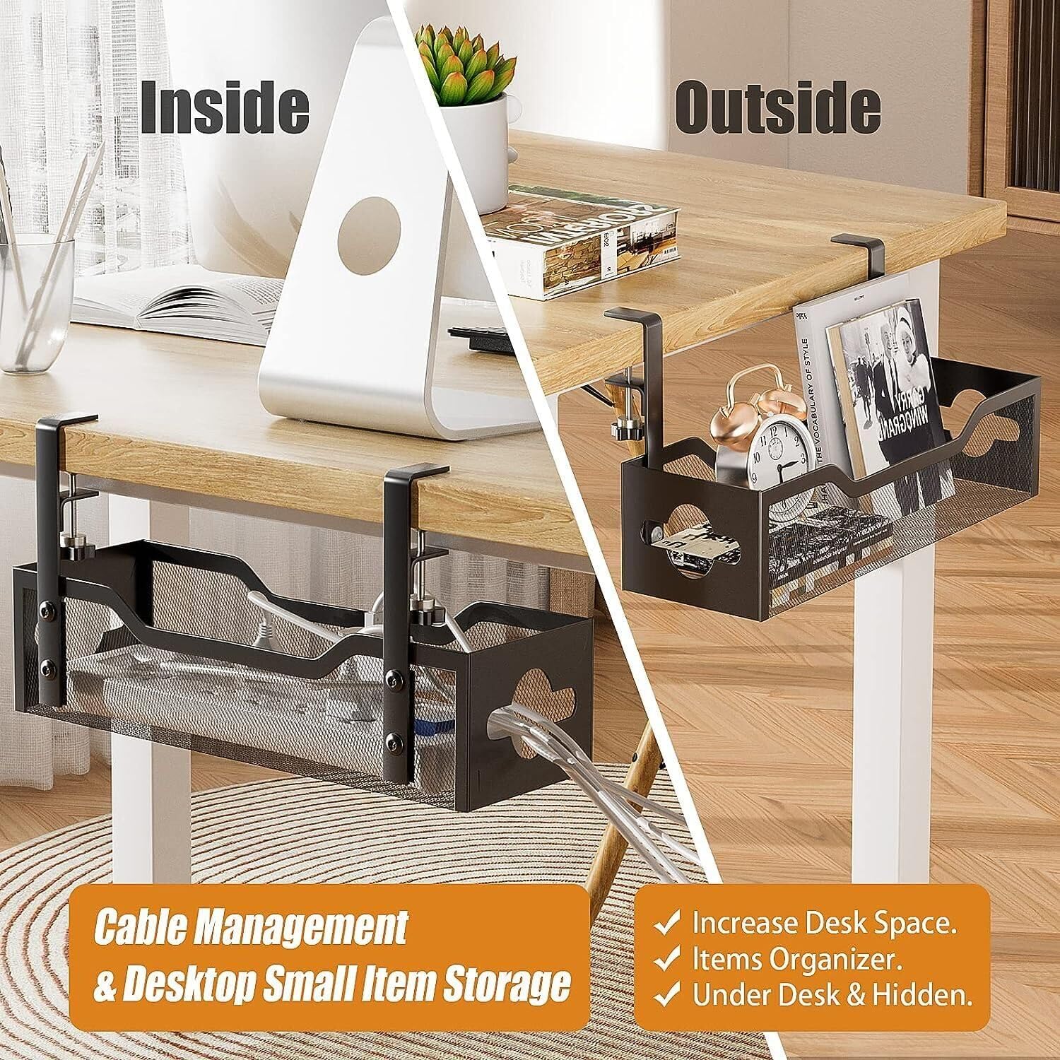 - ELEGANT UNDER DESK CORD ORGANIZER 1 Pack - The design of the mesh cable management frame is more beautiful and generous than that of pure iron wire products, and there is no problem putting small items in it. The design of cable management holes on both sides can help you manage cables more easily.