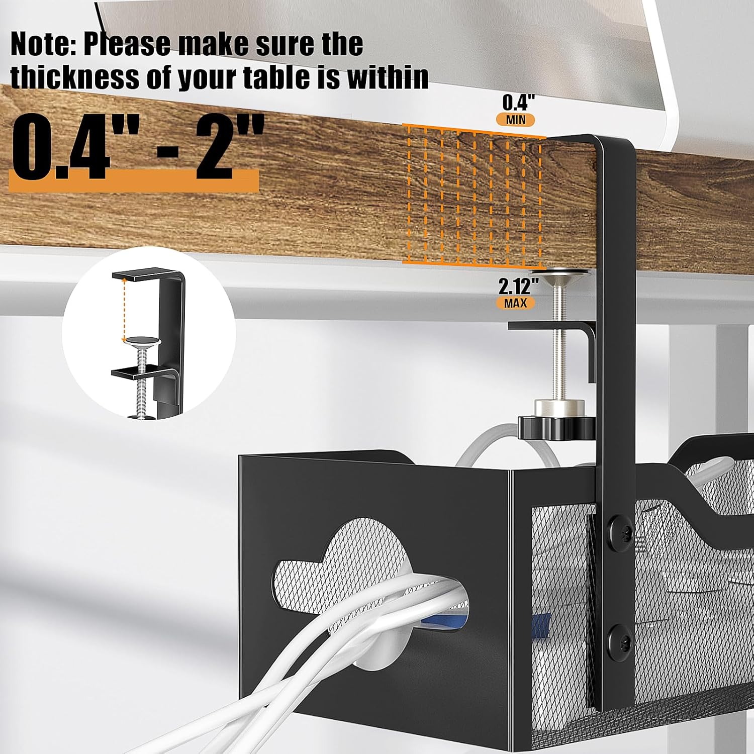 - NO DRILLING REQUIRED - Quszmd under desk cable management rack provides "drill-free installation" option, which adopts clip-on installation method, so you can use this product on all tabletops including standing desks, glass tables, wood, metal tables, etc. Will not leave any marks or damage to your table. But please note that when there are iron wires or other partitions under your table, you need to carefully check whether the size of this product can be installed normally.