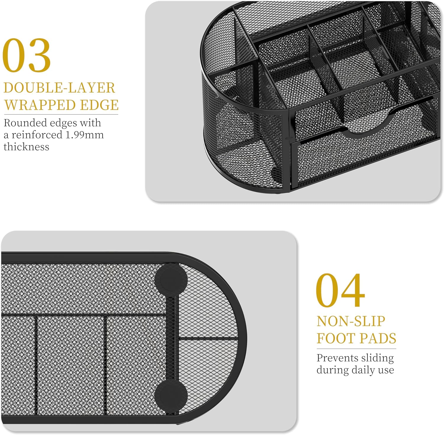 SUPEASY Mesh Desk Organizer, Desk Accessories & Workspace Organizers with Drawers, Pencil Holder for Desk with 9 Compartments for Office Supplies, 8.6 x 4.3 x 4.1 Inch, Black