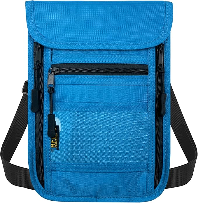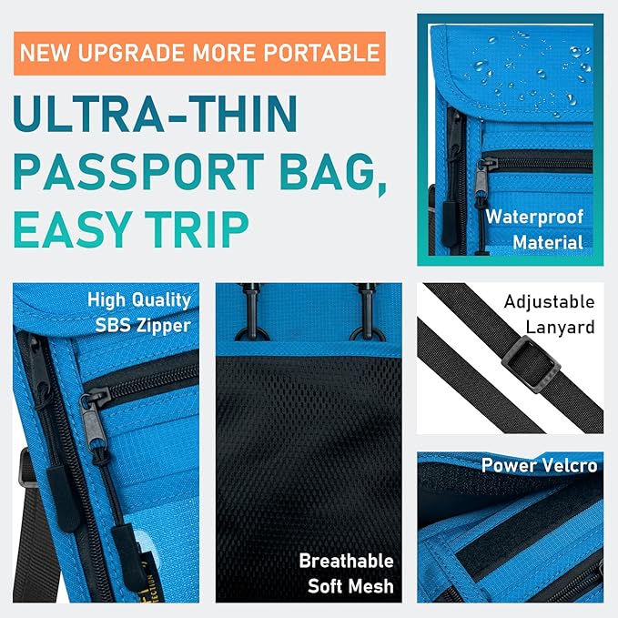 sundee Travel Neck Wallet with Double Zippers, RFID Blocking Passport Holder with Adjustable Neck Strap for Men and Women to Keep Cash, Credit Cards and Travel Documents Safe - Lake Blue