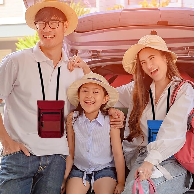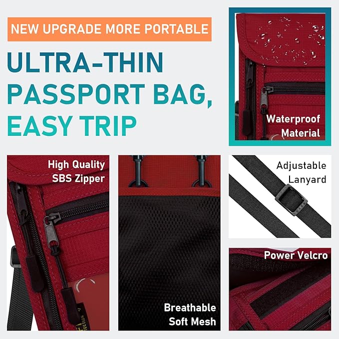 sundee Travel Neck Wallet with Double Zippers, RFID Blocking Passport Holder with Adjustable Neck Strap for Men and Women to Keep Cash, Credit Cards and Travel Documents Safe - Red