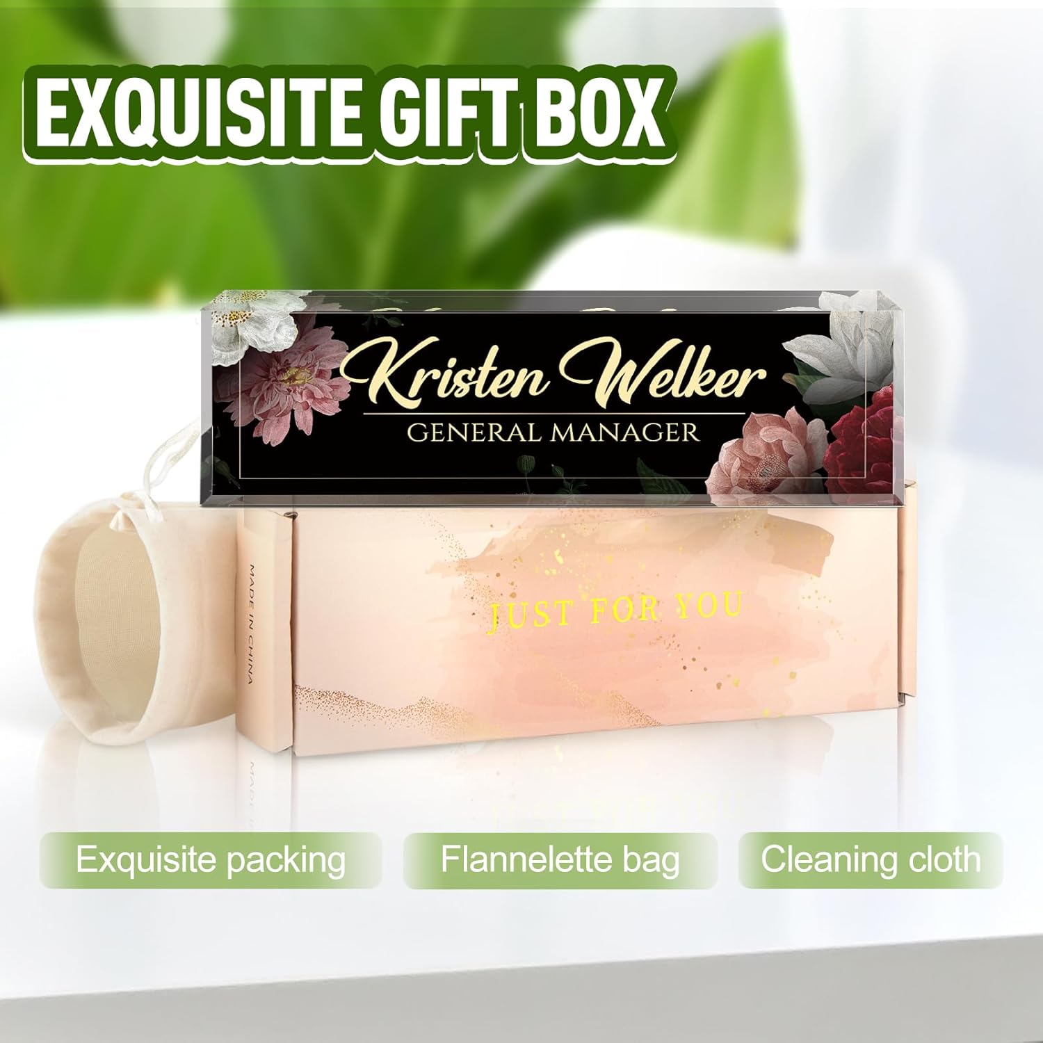 - ✨Personalized Acrylic Desk Name Plate: It's very easy to customize, you only need to choose your favorite design style, and then enter your name/title/company name/good wishes, whatever you want to display. But make sure to enter your custom text the way you want it (uppercase vs. lowercase, full title vs. abbreviation, etc.). Please make sure you write it correctly, we have professional designers to design it, you will be amazed how professional your finished nameplate looks!