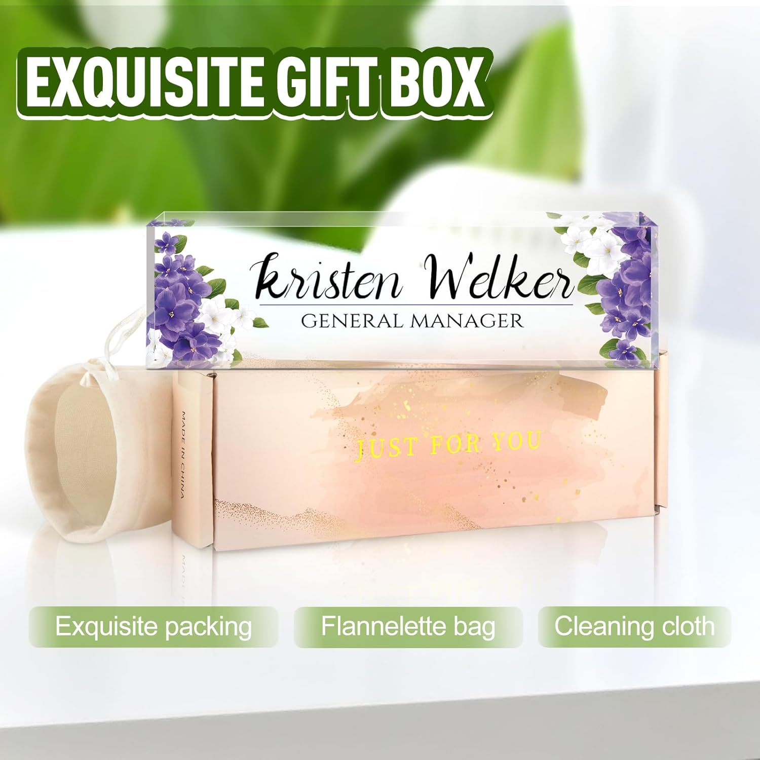 Custom Name Plate for Desk, Desk Name Plate Personalized, Office Decor for Women, Acrylic Desktop Accessories, Office Appreciation Gifts for Boss Social Workers Nurse Teacher Employee(Purple Flowers)