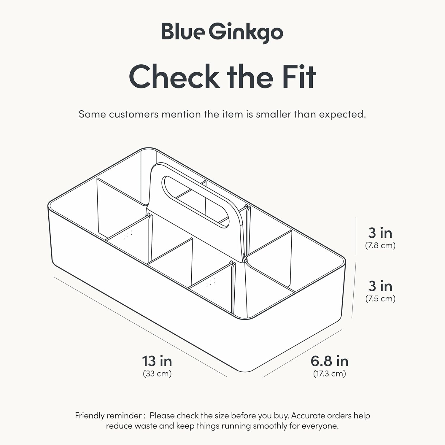 - DIMENSIONS FOR PERFECT FIT – Long Rectangle Caddy: 6.8" x 13" x 3" (8 compartments). Note: Please check the size chart in the product images to ensure it fits your specific space and needs.