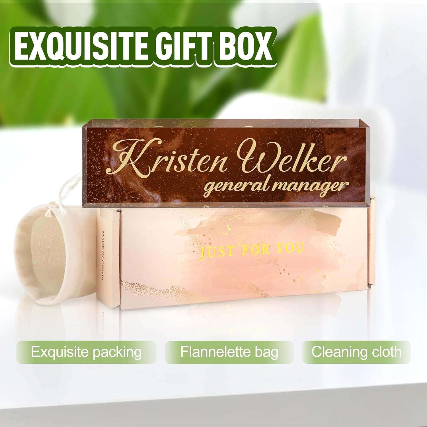 - ✨Personalized Acrylic Desk Name Plate: It's very easy to customize, you only need to choose your favorite design style, and then enter your name/title/company name/good wishes, whatever you want to display. But make sure to enter your custom text the way you want it (uppercase vs. lowercase, full title vs. abbreviation, etc.). Please make sure you write it correctly, we have professional designers to design it, you will be amazed how professional your finished nameplate looks!