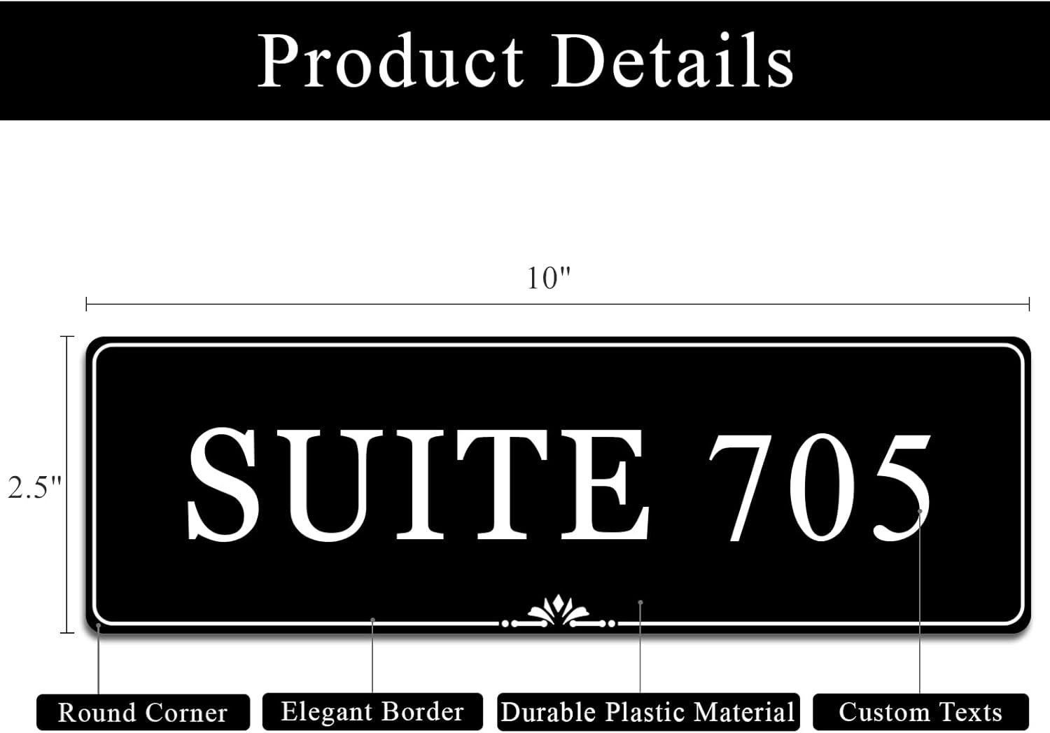 - UNIQUE DESIGN--The custom office door name plate design in an elegant style. The simple line border makes it more special. 10 colors available. Size is 2.5"H x 10"L.