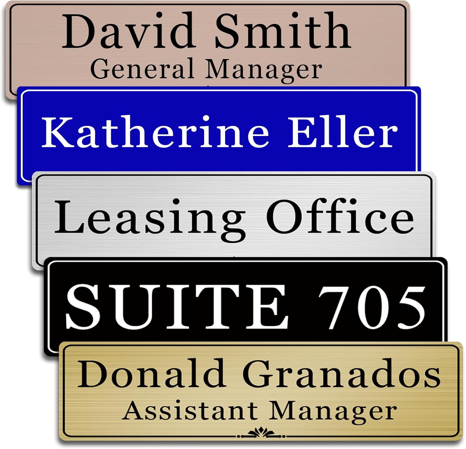 - EASY TO INSTALL--Each door name plate with strong adhesive, can mount to every smooth surface easily, won't fall. Personalized the name plates for your boss, manager, lawyer, accountant, or home/ office door.