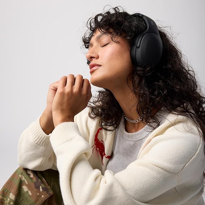 Skullcandy Crusher Evo Wireless Bluetooth Headphones with Extra USB-C Charging Cable, Multi-Sensory Bass, Noise Isolating Over-Ear Fit, 40 Hours Battery, Microphone for iPhone Android - True Black