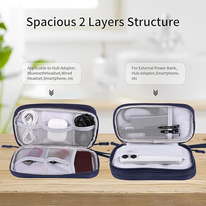 - 2 Compartments Design: The case bag comes with 2 compartments, designed to store electronic gadgets, such as power bank, external hard drive, SD memory card, cables, earphone, connector adapter, also good for kids’/students stationeries, like pen, pencil, highlighter, gel pen & eraser.
